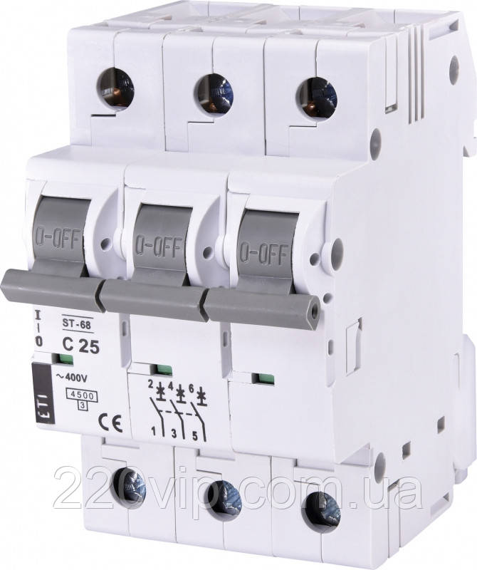 Автоматичний вимикач ST-68 6 3p С 25А (4,5 kA) ETI, 2185318 ETIMAT модульний автомат двополюсний