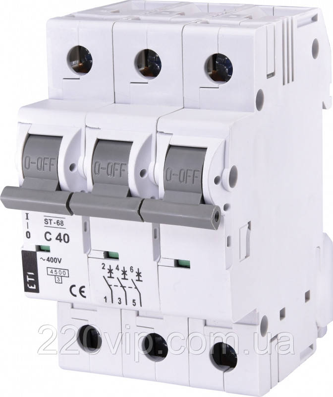 Автоматичний вимикач ST-68 6 3p С 40А (4,5 kA) ETI, 2185320 ETIMAT модульний автомат двополюсний